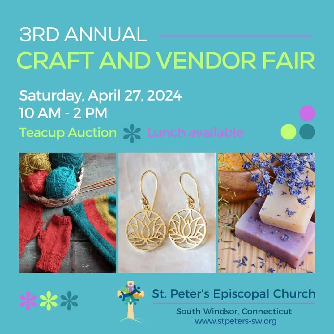 Join us for our Third Annual Spring Vendor and Craft Fair April 27, 2024, from 10 AM – 2 PM.  In addition to a variety of local businesses, services, and crafters, lunch will be available for purchase between 11:00 and 1:00. A teacup auction is a highlight of the event.